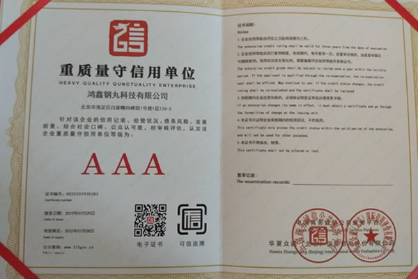 公司所有產(chǎn)品均通過(guò)ISO9001 **質(zhì)量認(rèn)證,2014年更獲得了第三屆中國(guó)金屬磨料行業(yè)具有影響力品牌-華尊獎(jiǎng)